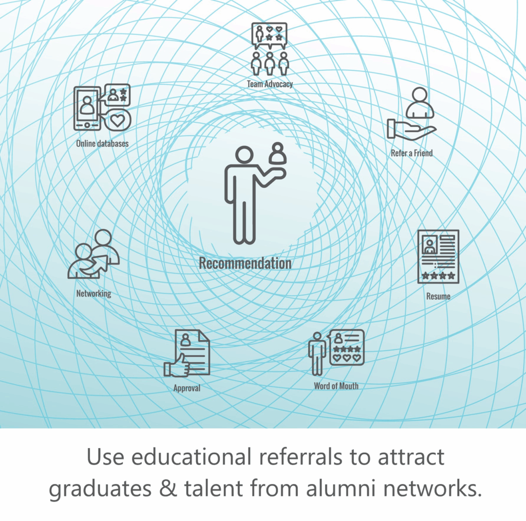 The Employer Talent Marketplace features an integrated app to drive referrals from universities, colleges, and alumni networks. Benefits include: